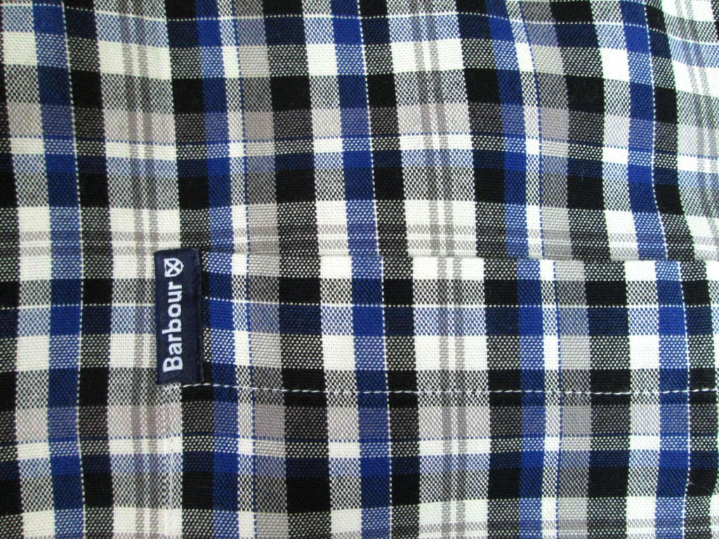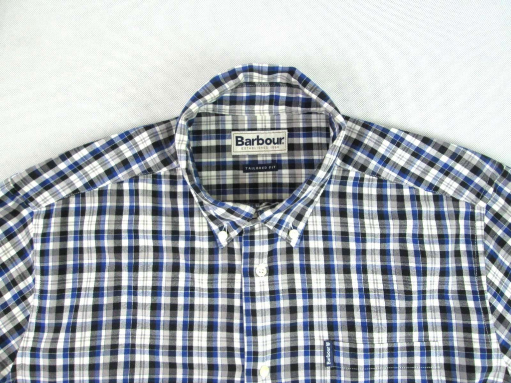 BARBOUR FÉRFI (L) ELEGÁNS FEHÉR-SZÜRKE-SÖTÉTKÉK APRÓ KOCKÁS HOSSZÚ UJJÚ ING