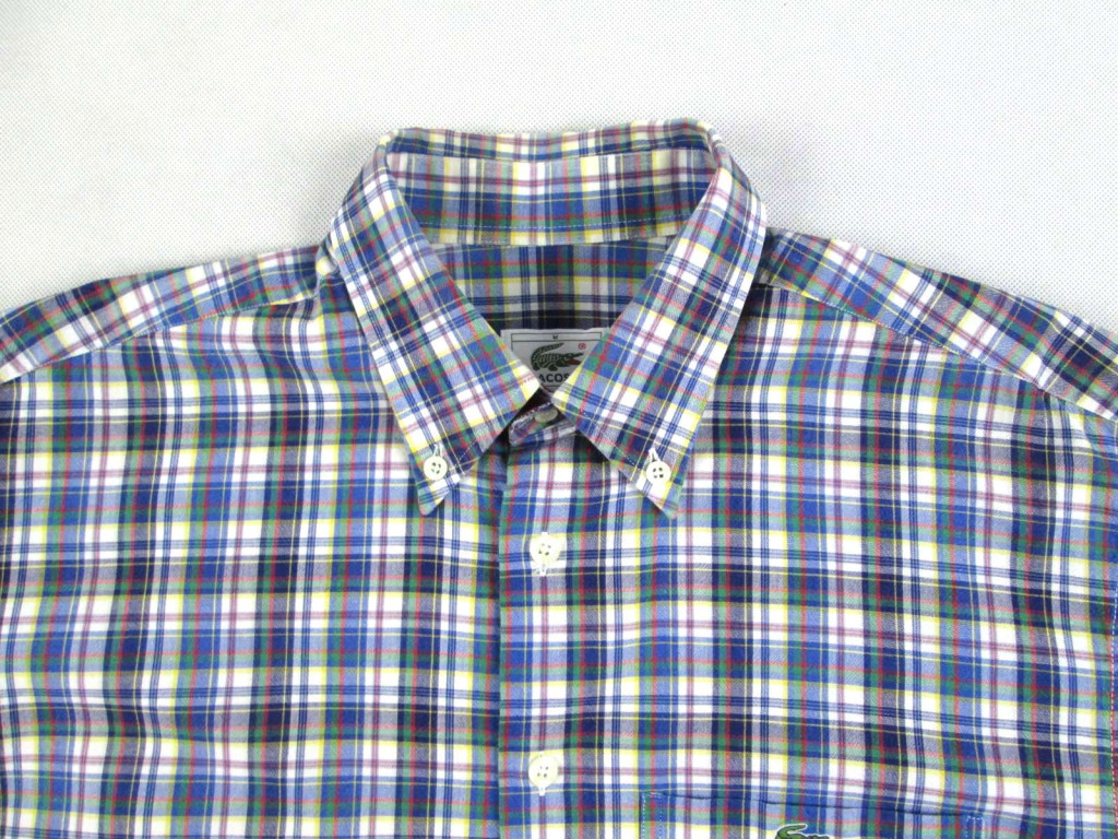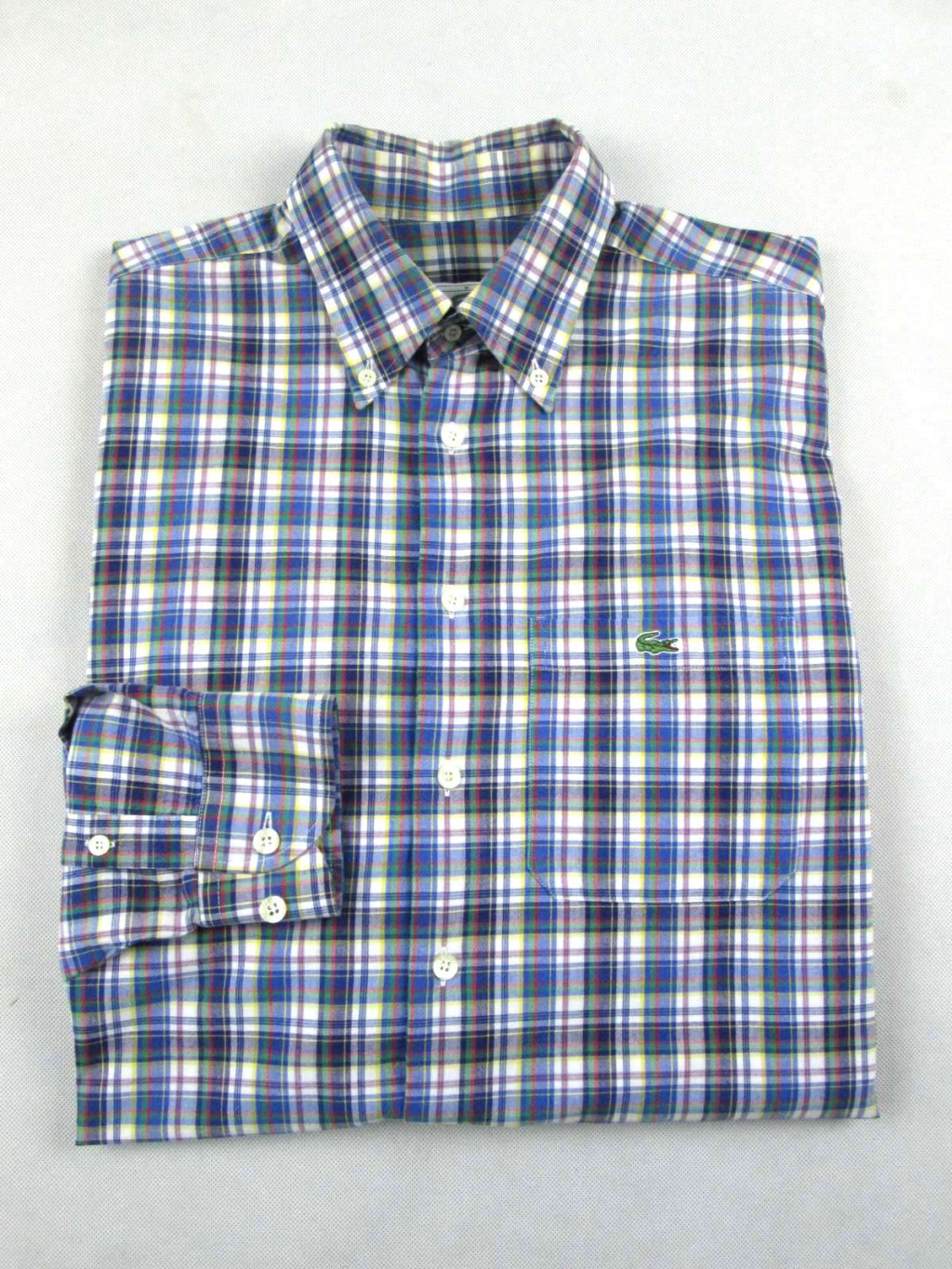 LACOSTE FÉRFI (M / L) FEHÉR-SZÜRKE-ZÖLD-PIROS KOCKÁS ELEGÁNS KOCKÁS HOSSZÚ UJJÚ ING