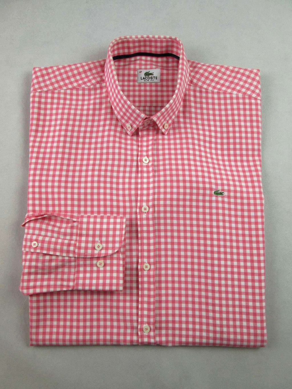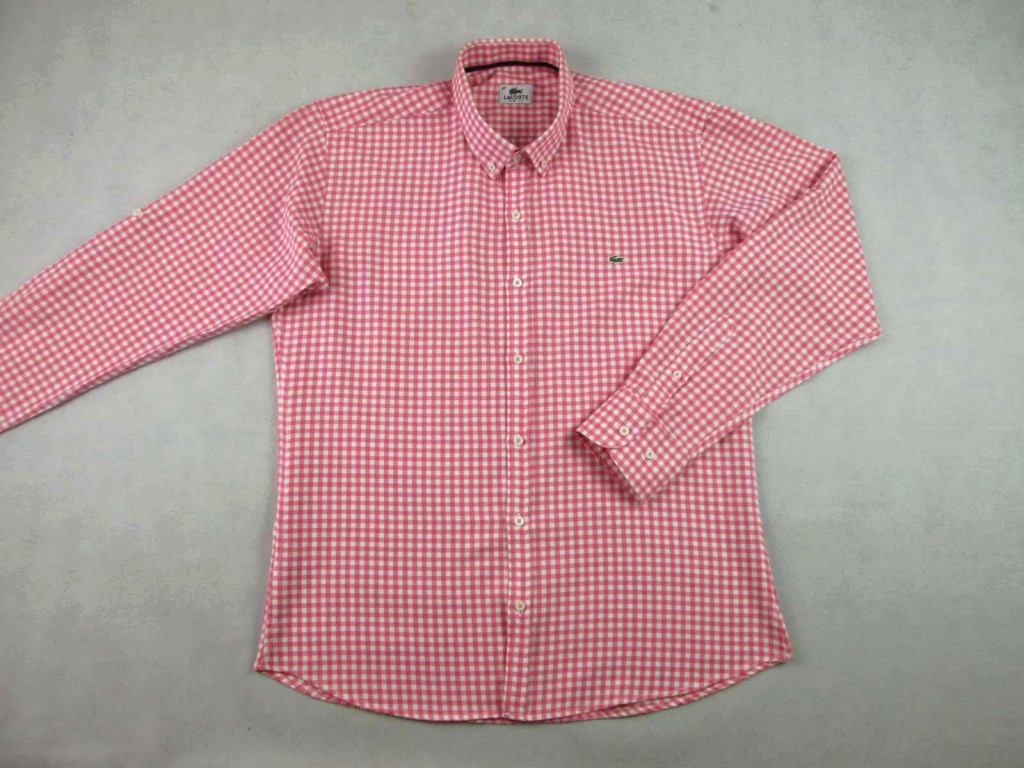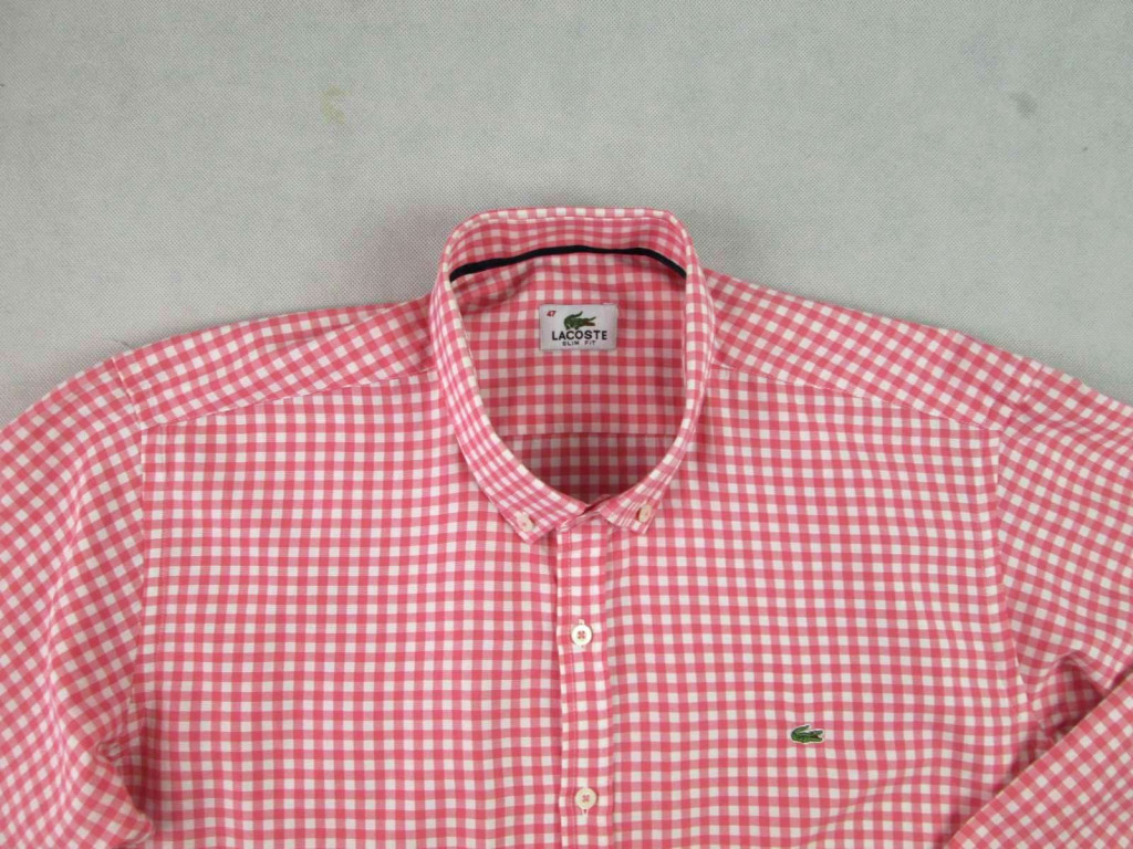 LACOSTE SLIM FIT FÉRFI (L) ELEGÁNS PIROS-FEHÉR APRÓ KOCKÁS HOSSZÚ UJJÚ ING