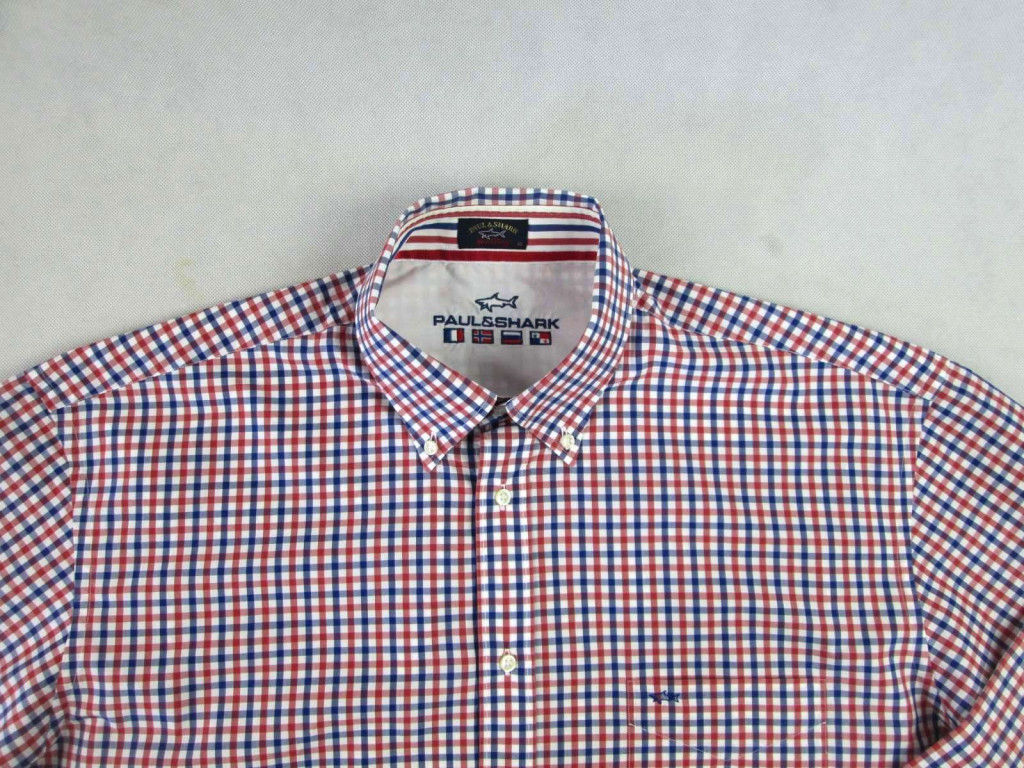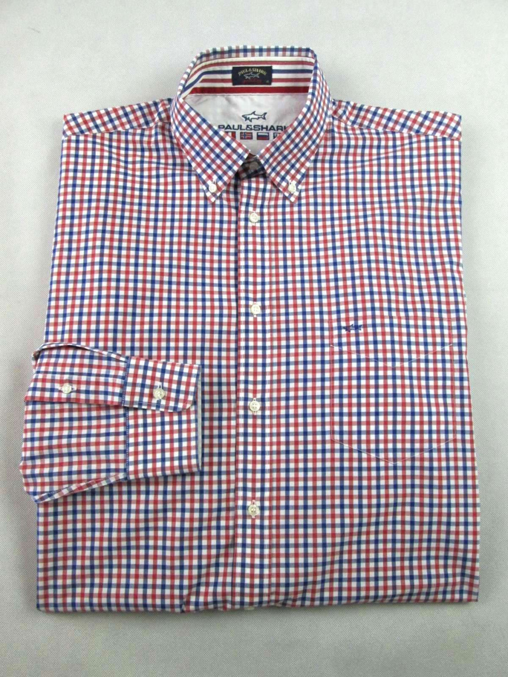 PAUL & SHARK FÉRFI (3XL) HOSSZÚ UJJÚ PIROS-SÖTÉTKÉK-FEHÉR APRÓ KOCKÁS ING