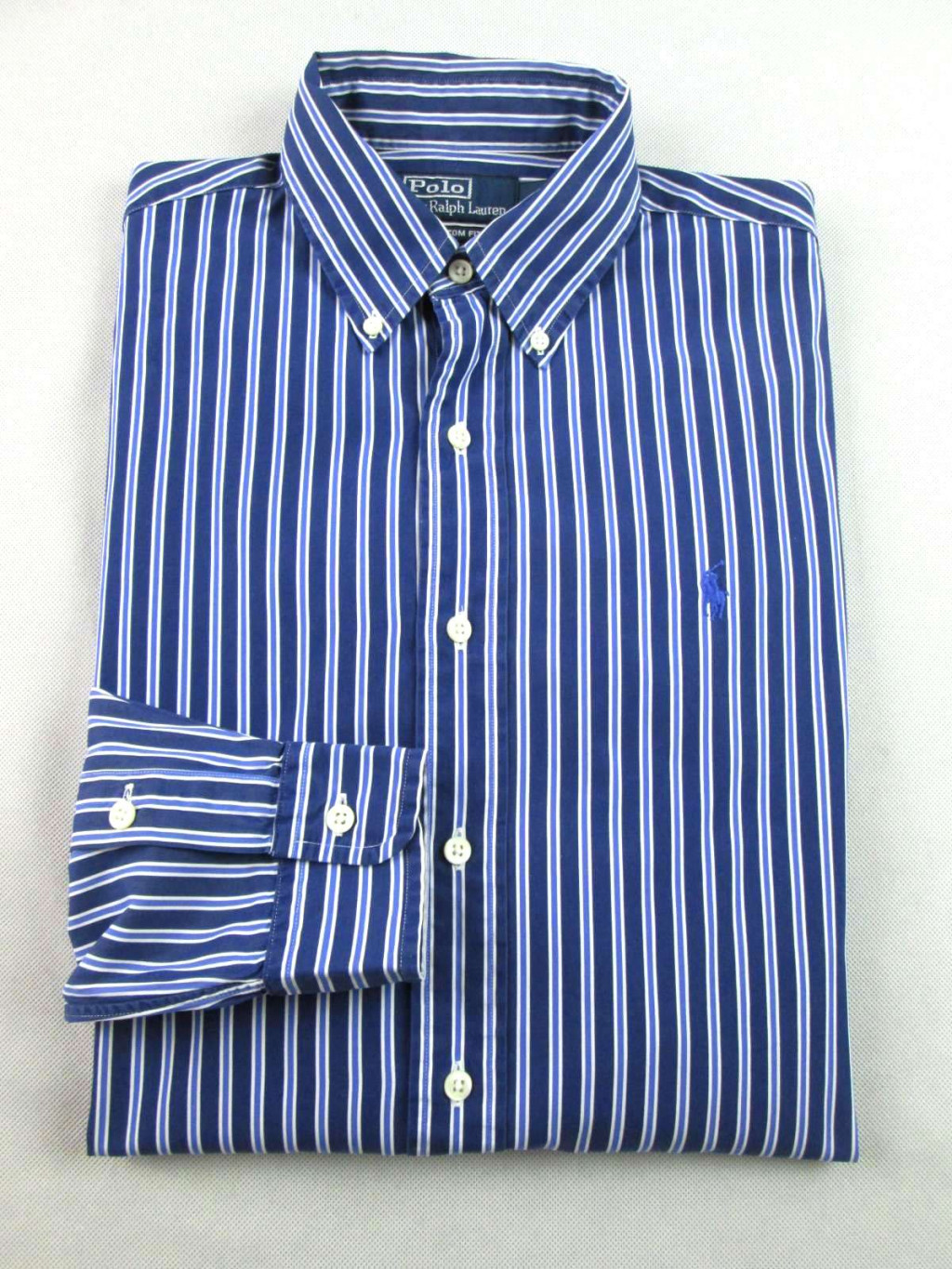 RALPH LAUREN FÉRFI (S) ELEGÁNS FEHÉR-SÖTÉTKÉK CSÍKOS HOSSZÚ UJJÚ ING