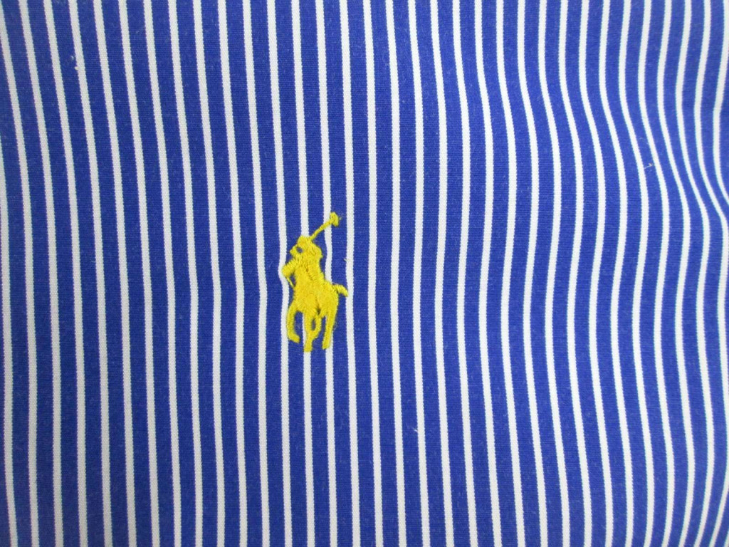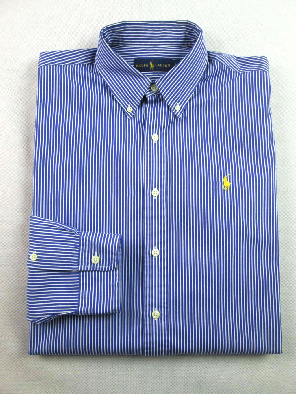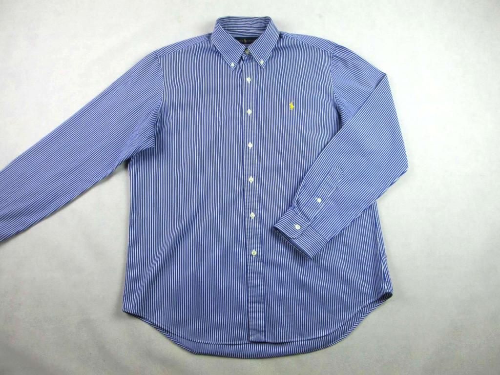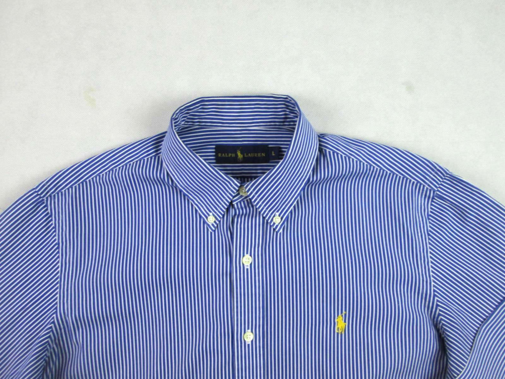 RALPH LAUREN FÉRFI (L) ELEGÁNS HOSSZÚ UJJÚ SÖTÉTKÉK-FEHÉR VÉKONY CSÍKOS ING