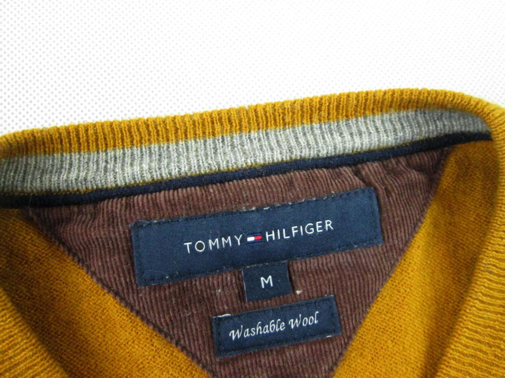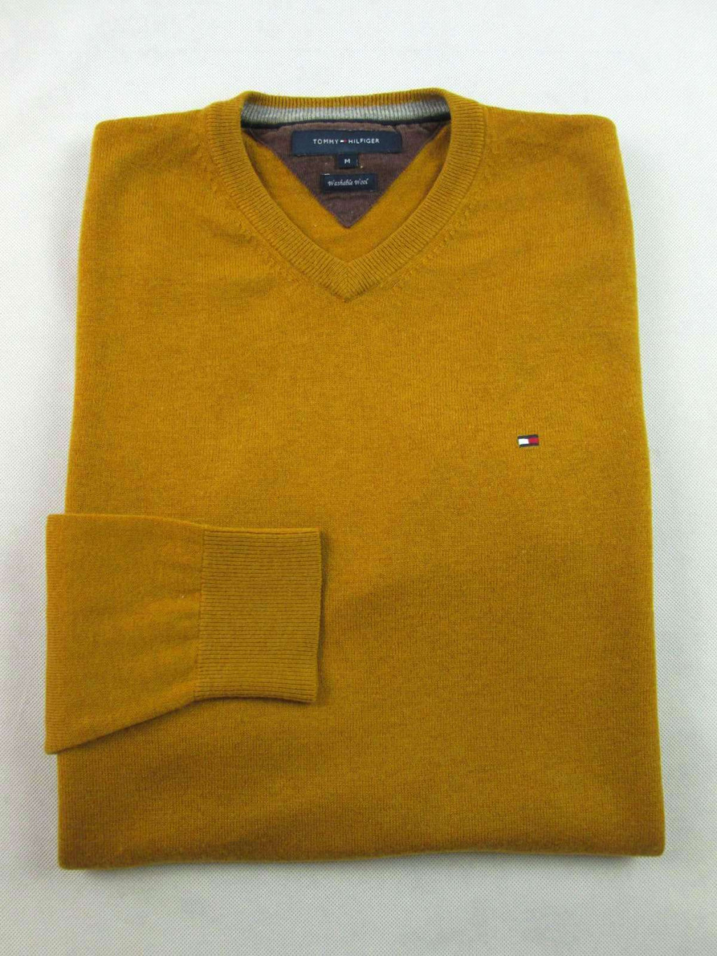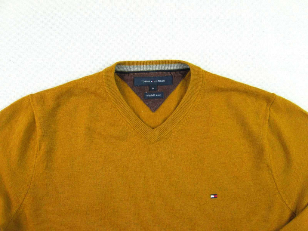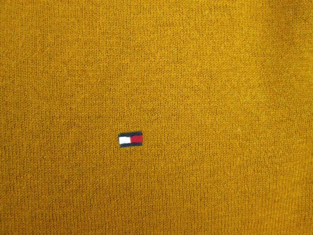 TOMMY HILFIGER FÉRFI (M) ELEGÁNS HOSSZÚ UJJÚ MUSTÁRSÁRGA GYAPJÚ PULÓVER