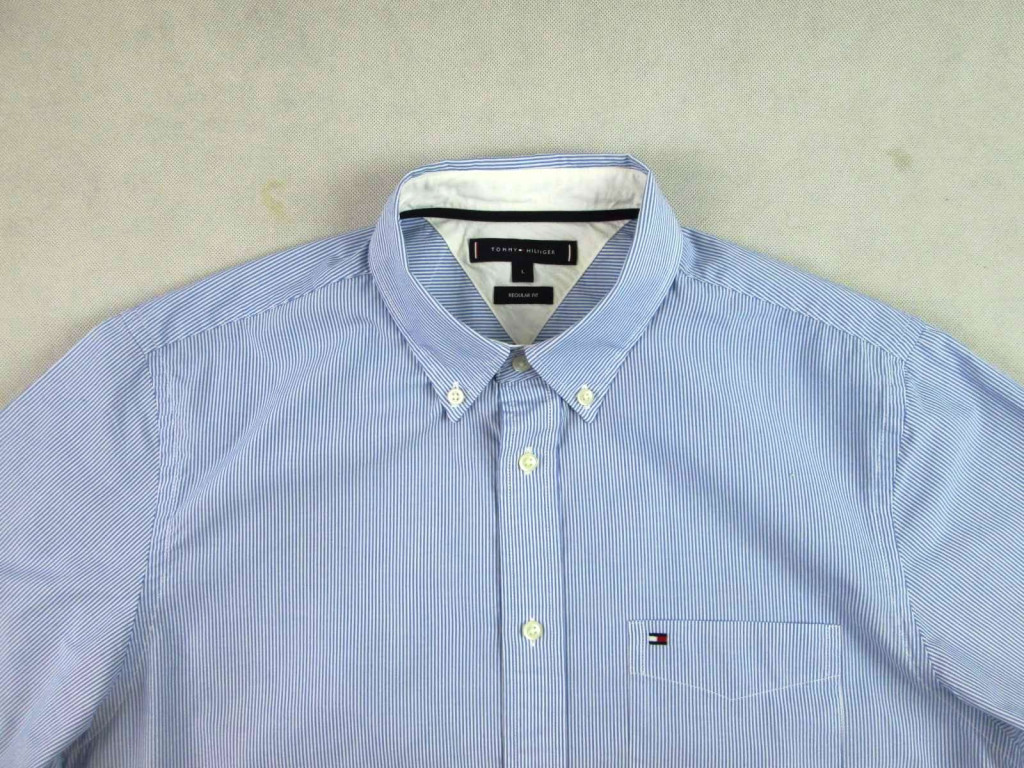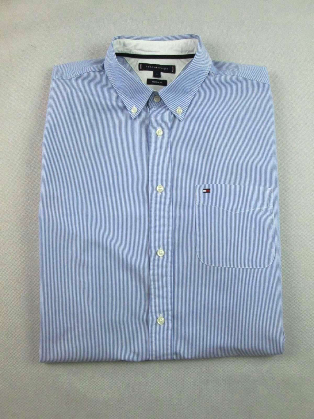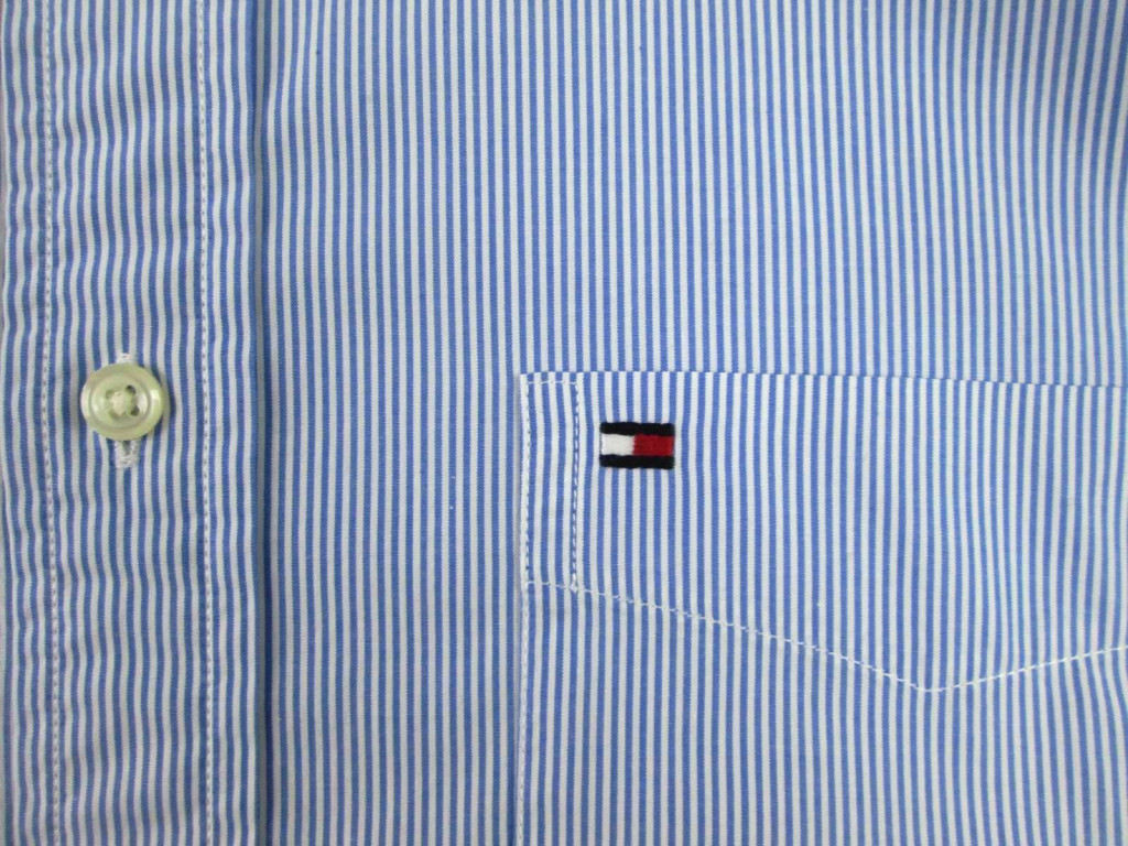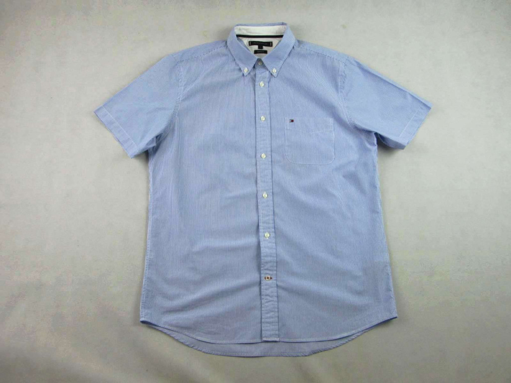 TOMMY HILFIGER FÉRFI (L) ELEGÁNS RÖVID UJJÚ FEHÉR-KÉK VÉKONY CSÍKOS ING